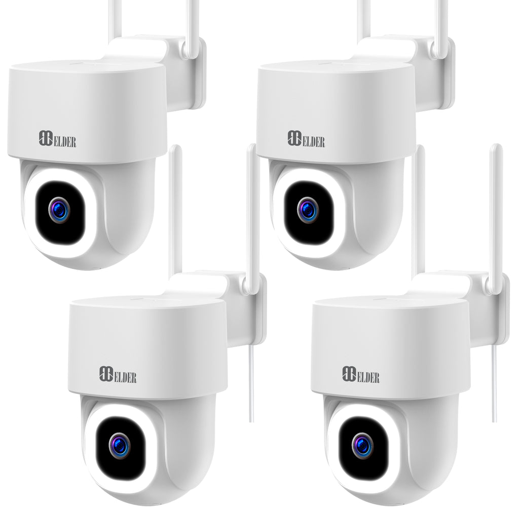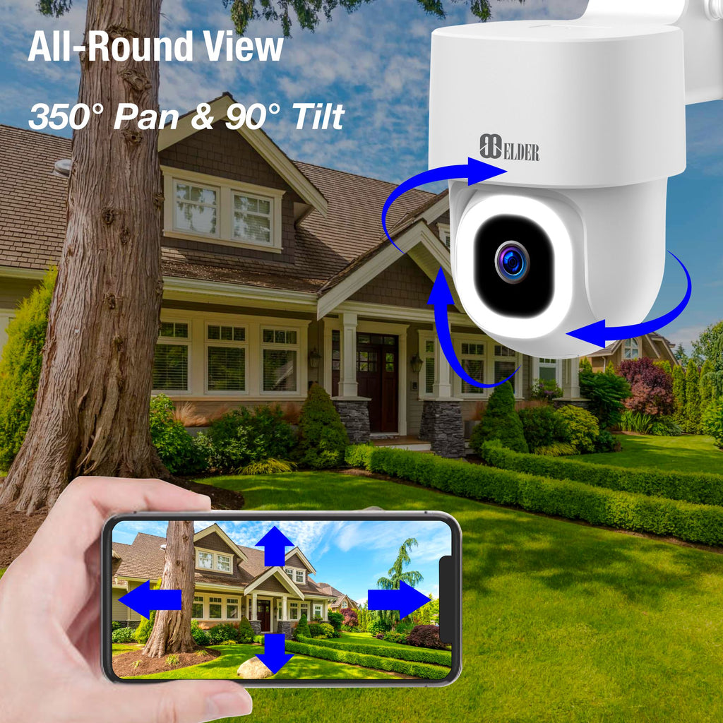 La caméra de sécurité Wi-Fi Elder 2K+ PTZ extérieure semi-sans fil avec fonction panoramique/inclinaison est un kit de surveillance fiable pour votre maison et votre entreprise. Les caméras intelligentes Elder sont dotées de l'IA pour la détection de mouvements, du suivi automatique , de la détection sonore et d'un projecteur de dissuasion activé par le mouvement . Ce kit de sécurité à monter soi-même est facile à installer et offre une vision nocturne couleur et un système audio bidirectionnel .